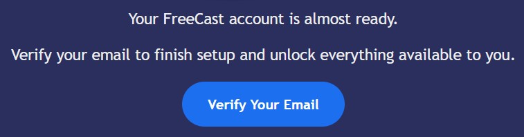 - The Email Verification process is in place to help prevent fraudulent signups, and to ensure that your FreeCast account is secure, and only accessible by you.