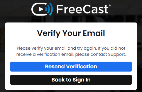 The Email Verification process is in place to help prevent fraudulent signups, and to ensure that your FreeCast account is secure, and only accessible by you.