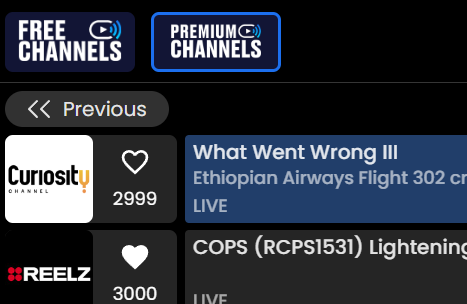 - Once you're logged in, visit the Channels section and then click the Premium Channels button.