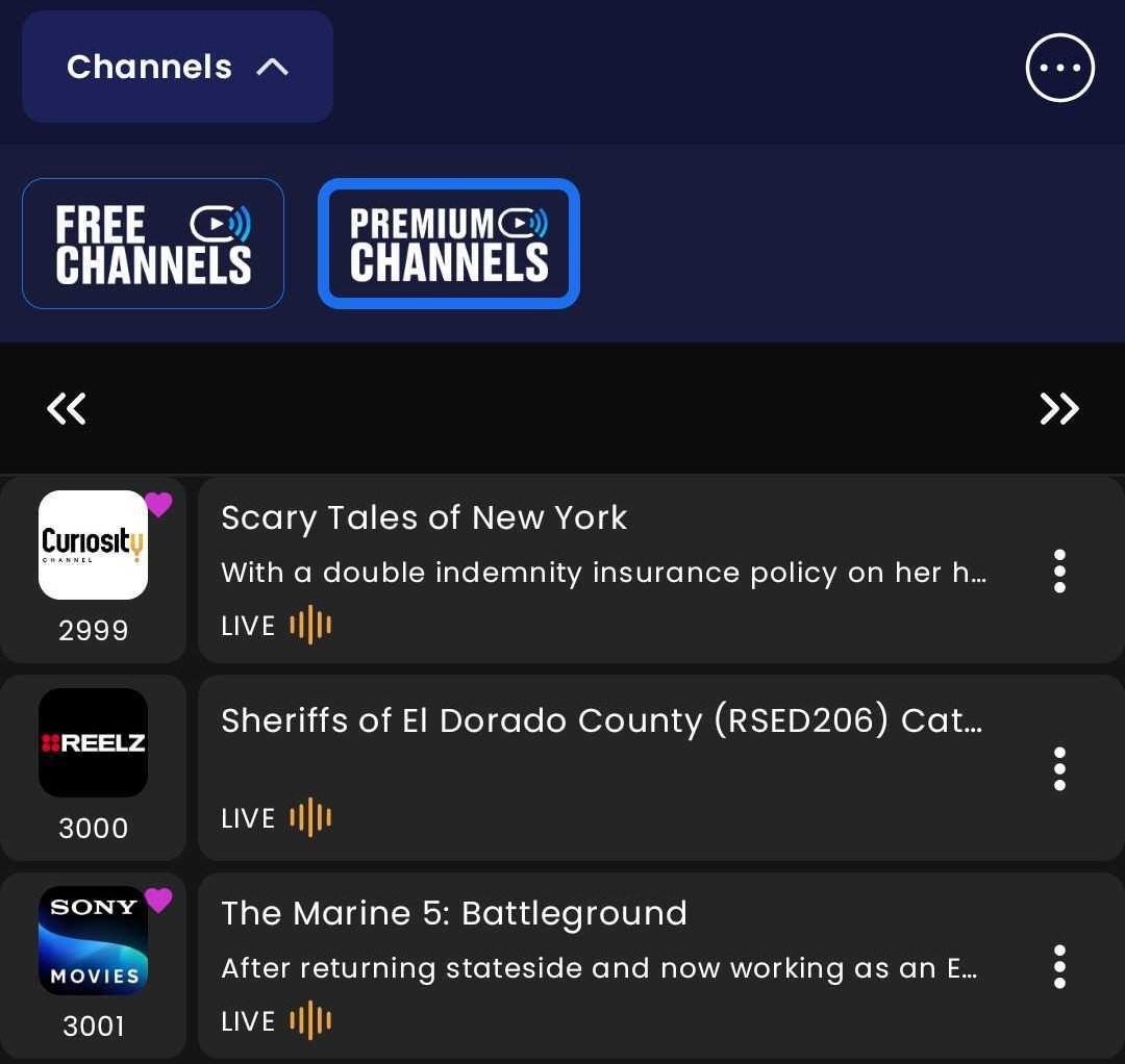 - After logging in, choose Premium Channels from the top Channels menu, if you're not already in that Channels section.