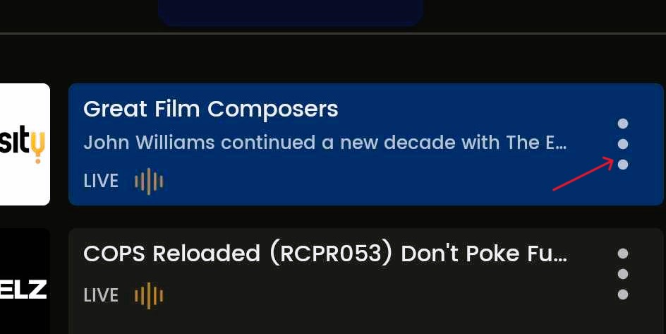 - After finding the show or movie you want to record, press your finger down on the three little dots, on the far right side of that channel description box.