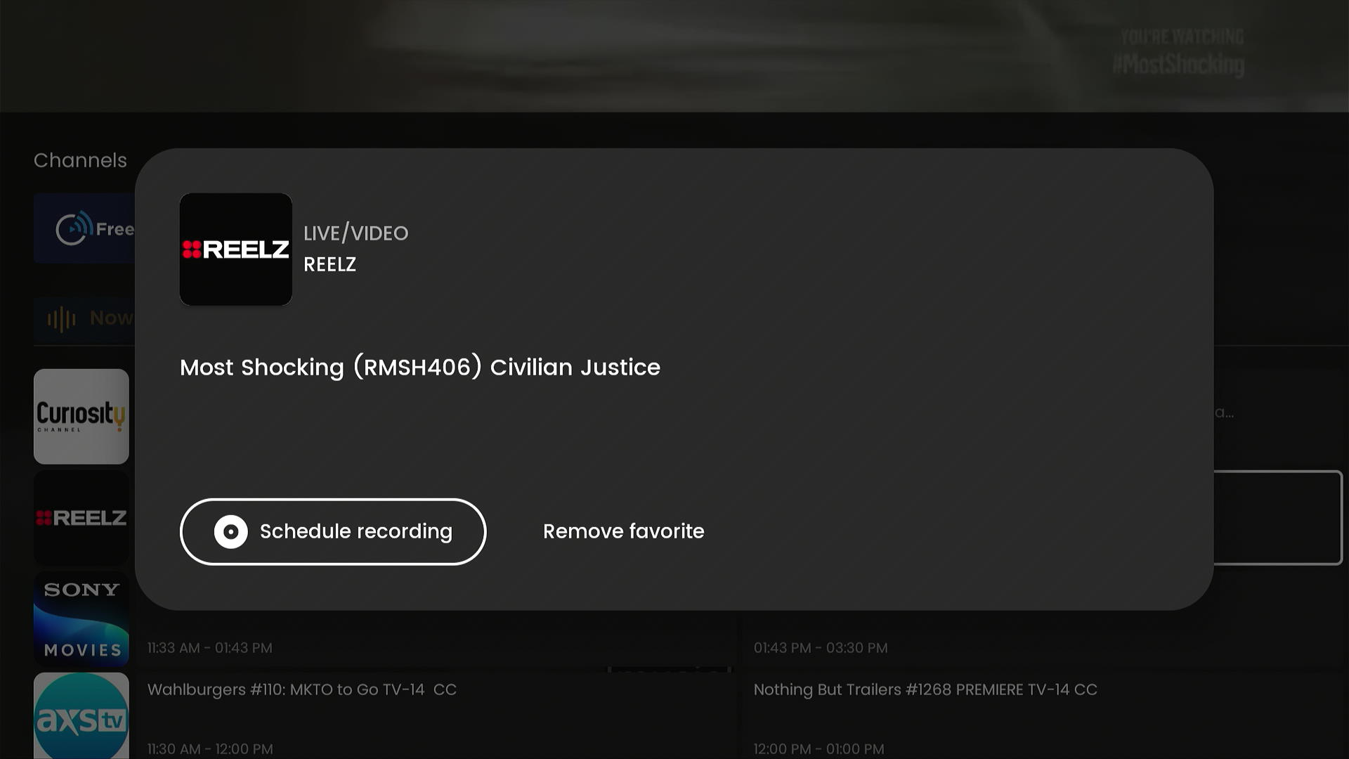 - Choose the upcoming show or movie you want to record and then select Schedule Recording.