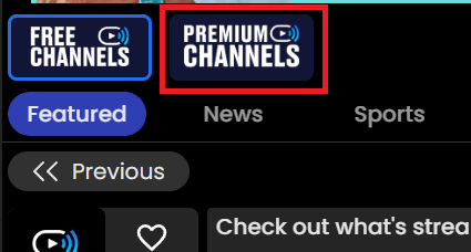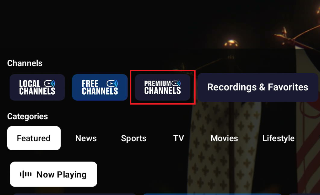 After logging in to the FreeCast app on your TV, you should arrive at the Channels section.